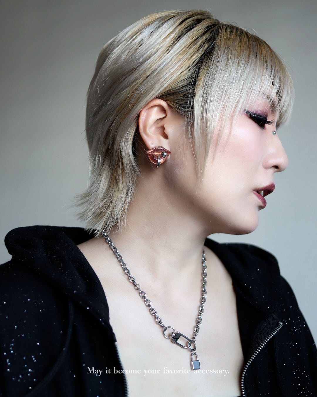9月限定カラーです。 光を含むたびにきらめきを放つ、 レジンで作り上げる唇アクセサリー。 裏面にマグネットジェルで丁寧にカラーを重ねることで、正面からは奥行きのある色合いを、横からはレジンならではの透明感を楽しめるデザインに仕上げました。 ほんのり透けるニュアンスカラーとゴールドの組み合わせが、耳元を上品かつ個性的に彩ります。 日常使いはもちろん、特別な日のアクセントにもおすすめのアイテムです。 軽いので着け心地も抜群です。 ○サイズ○ 全長 縦 約2㎝ ○重さ○ 片方 約 3 g (1円玉 3枚 が 約3gです ) ○素材○ ピアス金具(サージカルステンレス) ネジバネ式イヤリング (金属) シリコンカバー付