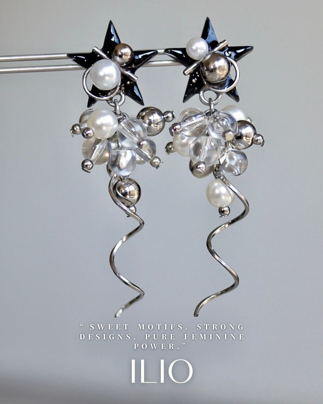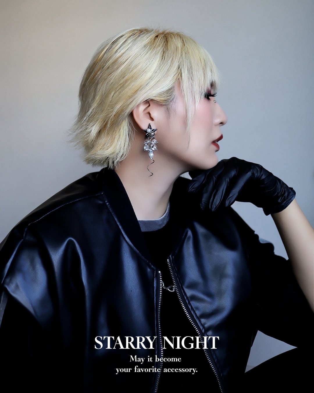 幻想的な星空をイメージしたSTARRY NIGHT BLACK。レジンでツヤっと作り上げた星を使ったスタイリッシュなデザインが、どんなコーディネートにも相性抜群です。耳元で揺れる星の輝きが、華やかさをプラスしてくれます。